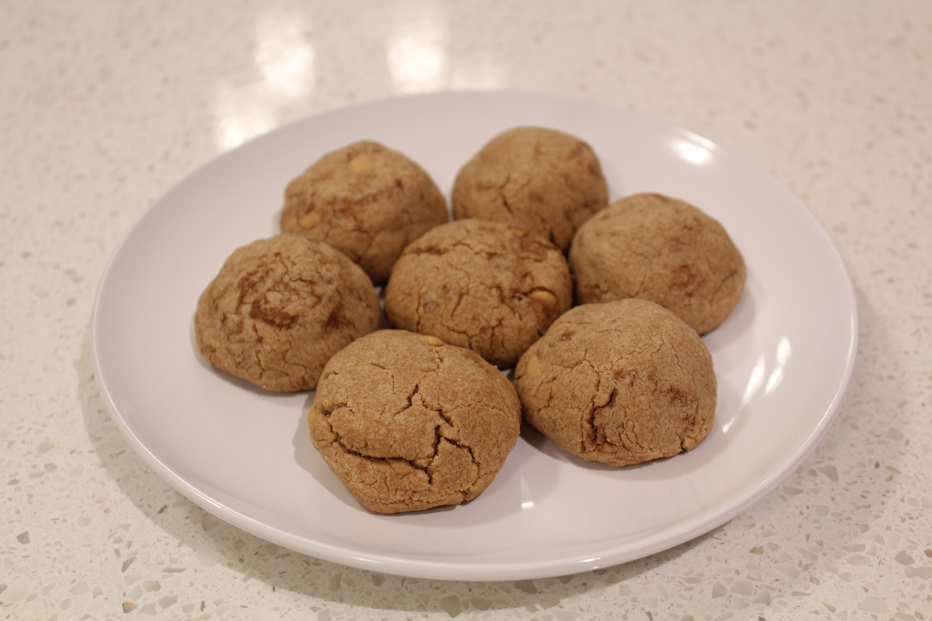 7. Scoop and roll balls of dough about 1 tbsp of dough each, into balls. The warmth of your hands will help them come together. Arrange 3 inches apart on prepared baking sheets. Bake the cookies for 10 minutes or until slightly golden brown around the edges. The baked cookies will look extremely soft in the centers when you remove them from the oven.